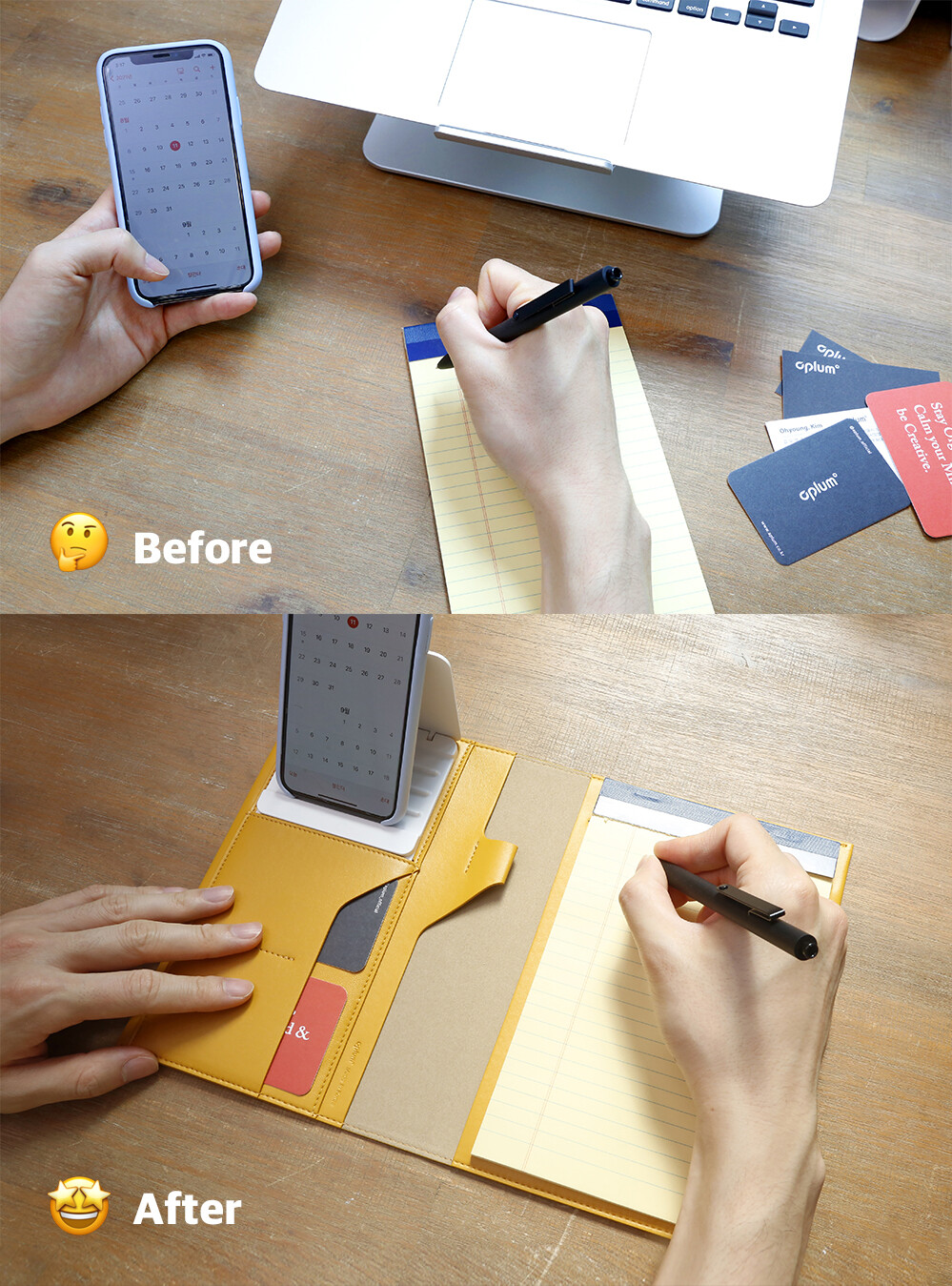 스마트노트는 노트 패드와 펜 홀더, 카드 포켓,